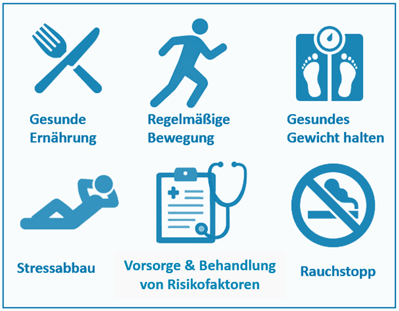 Verbesserung der Durchblutung des Herzmuskels und konsequente Kontrolle der Risikofaktoren.